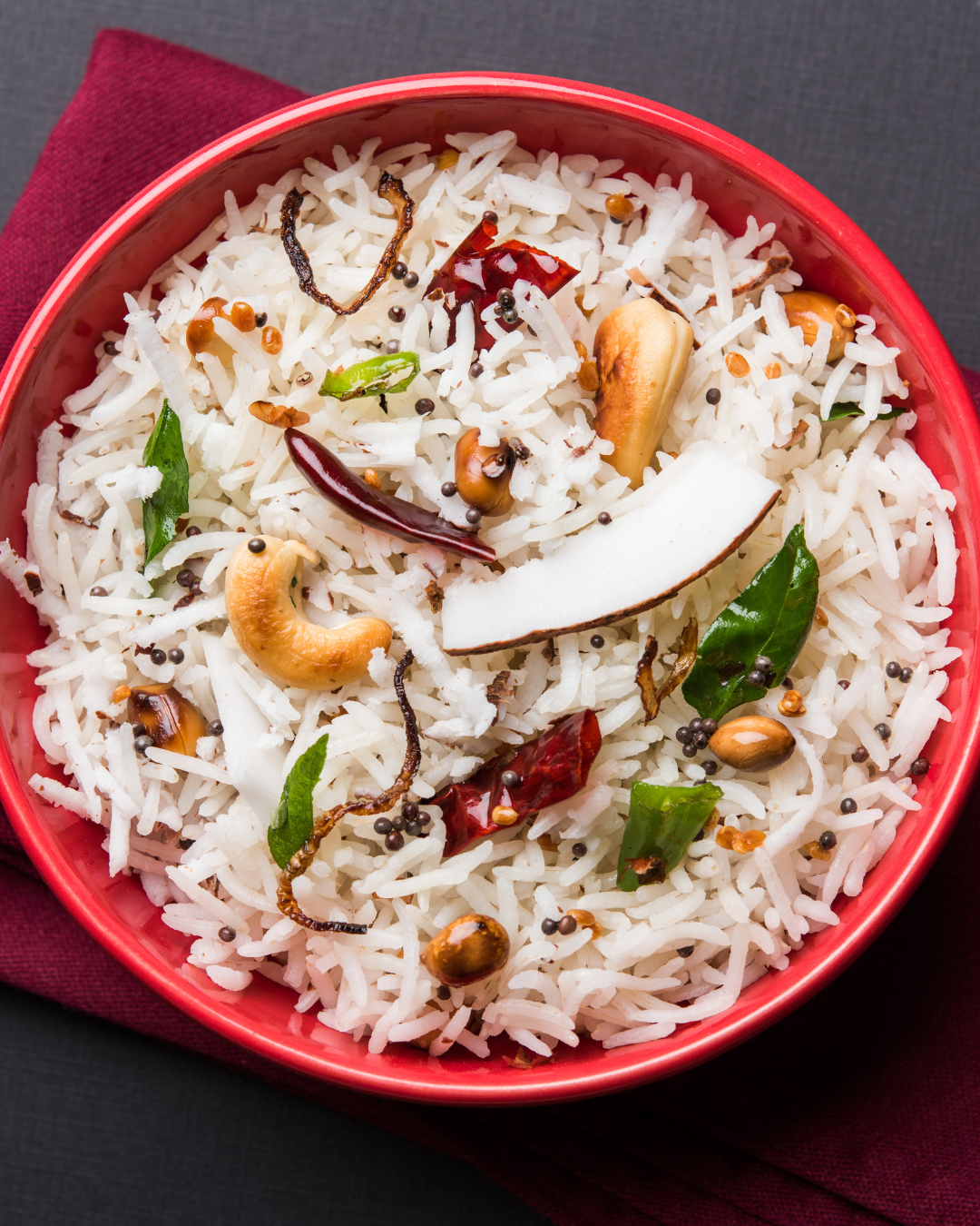 Fragrant coconut rice stir-fried with colorful vegetables for a tropical, savory twist.