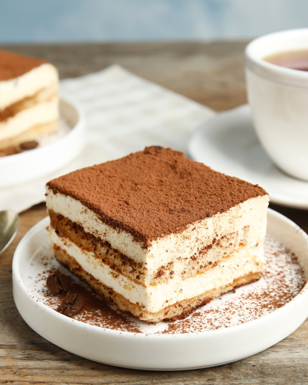 Classic Italian layers of espresso-soaked cake, mascarpone cream, and cocoa.