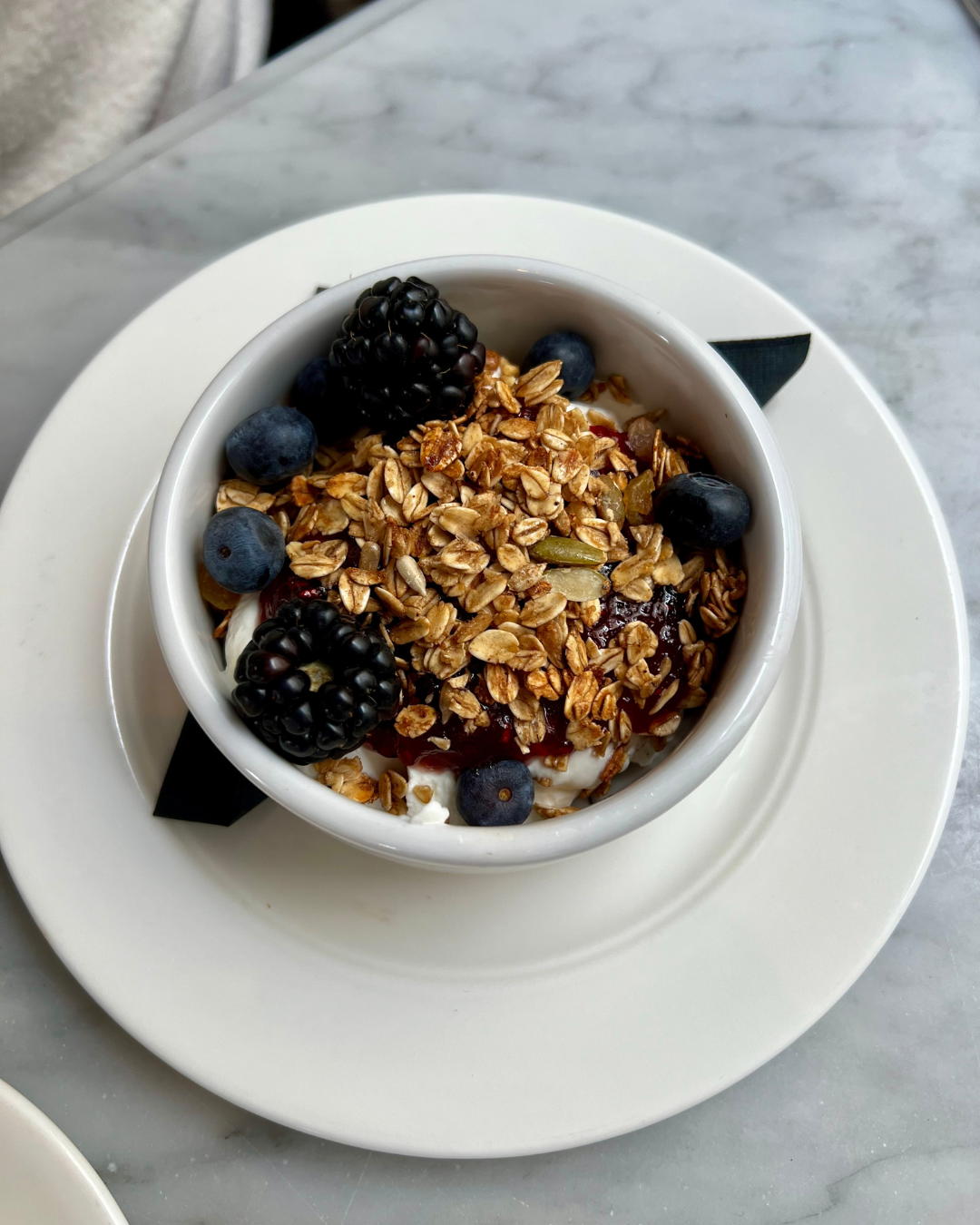 Creamy yogurt layered with crunchy granola and juicy blackberries — perfect for breakfast or a light snack.